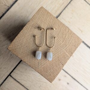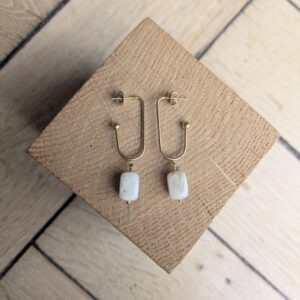 - Créoles ouvertes rectangulaires avec perle irrégulière marbrée, tendances et légères. Dimensions : environ 3,8cm de hauteur total et 1cm de large. Clous d'oreilles en acier inoxydable , perle de forme irrégulière marbrée en résine.