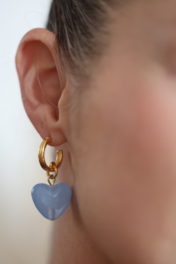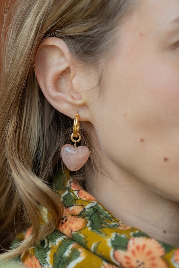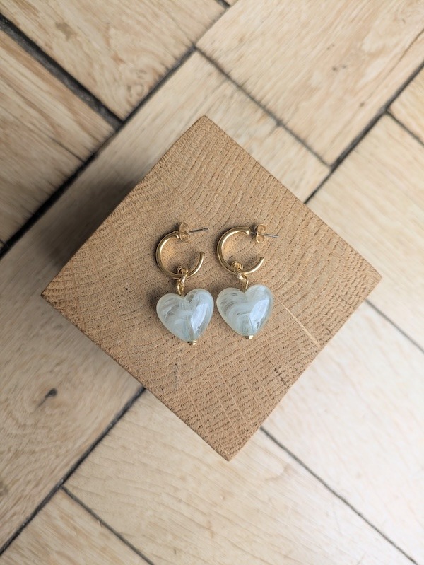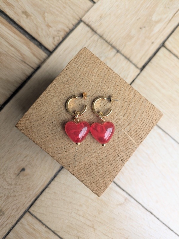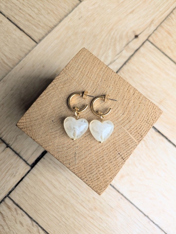 Créoles ouvertes avec perle en forme de coeur originales, tendances et légères. Créoles ouvertes en laiton doré à l’or fin 24K et perle en forme de coeur en résine
