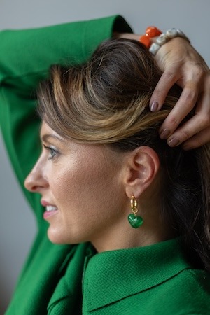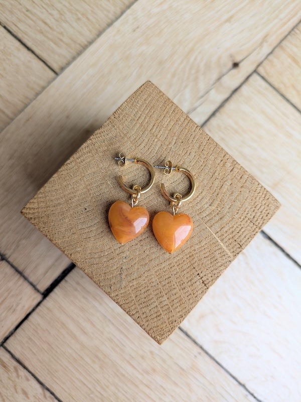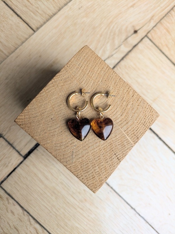 Clous d’oreilles en laiton doré à l’or fin 24K , perle en forme de coeur en résine