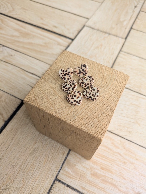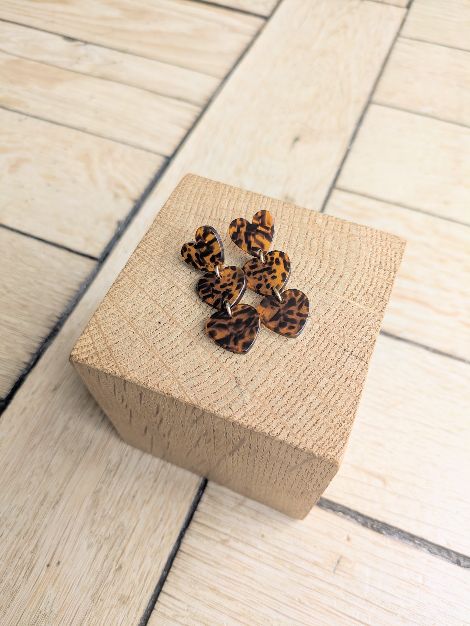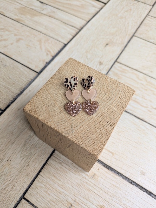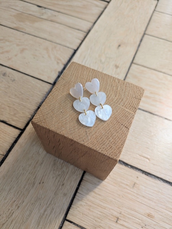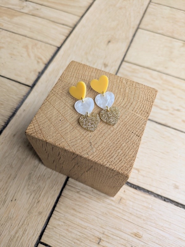 Clous d’oreilles coeur en acier inoxydable et pendentifs en forme de coeur en résine colorée .