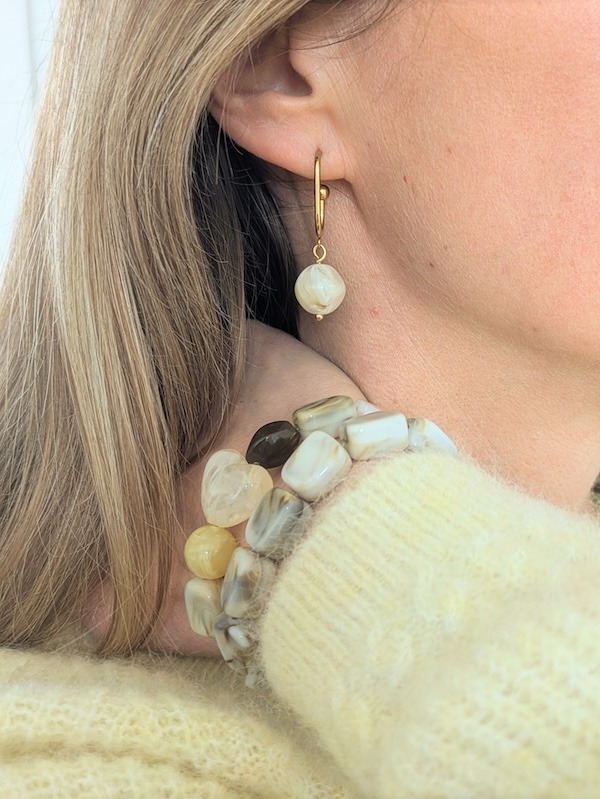 Clous d’oreilles en acier inoxydable , perle de forme irrégulière marbrée en résine.