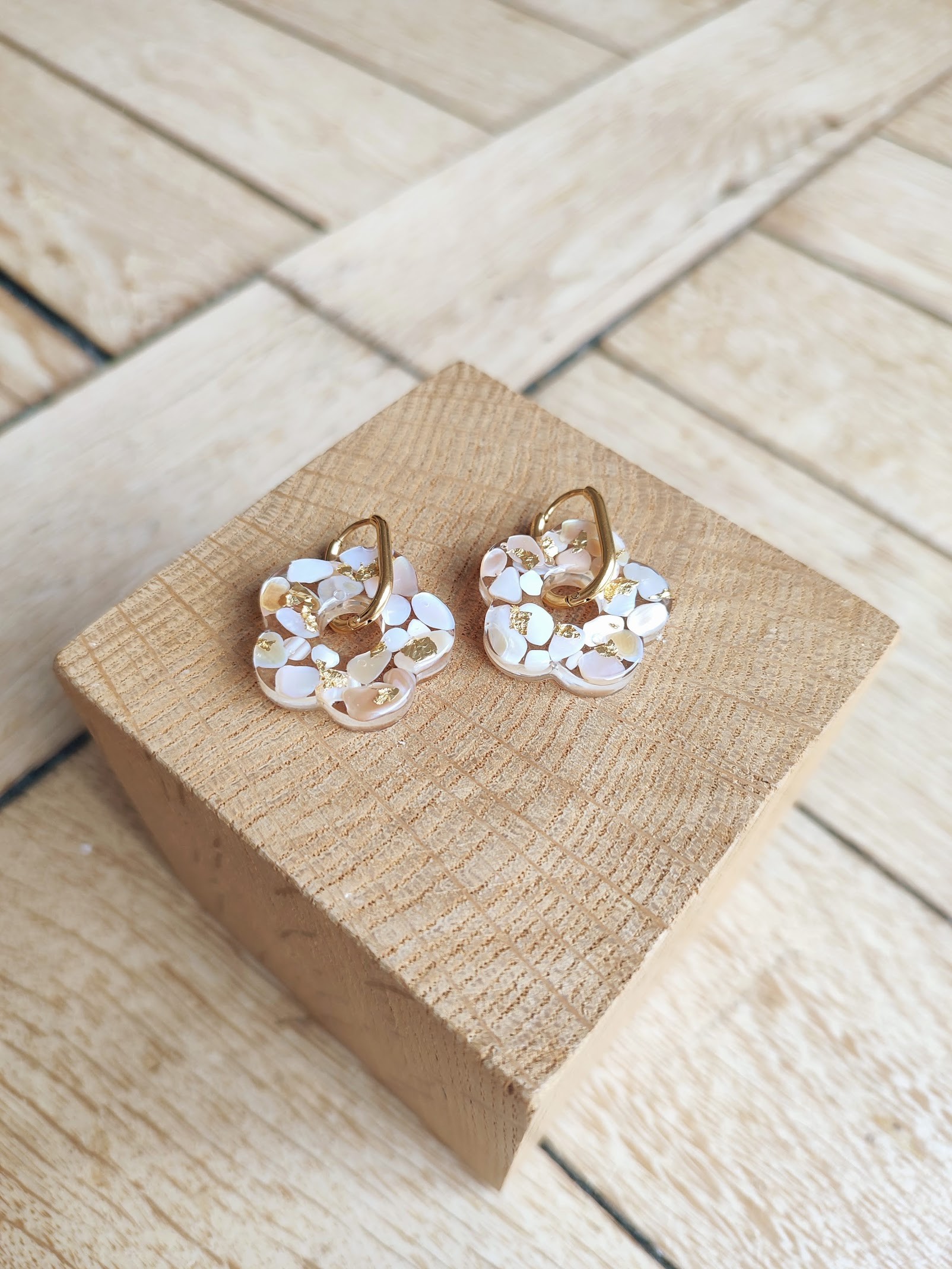 Créoles ovales avec pendentif en forme de fleur en résine époxy entièrement réalisée à la main, colorées et tendances, très légères et faciles à porter.