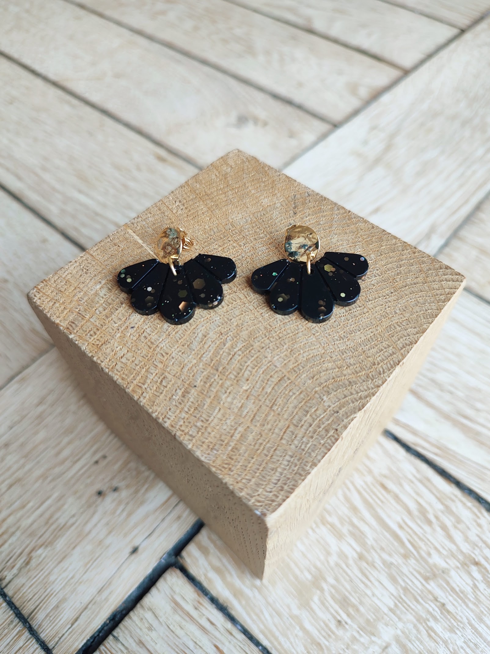 Boucles d’oreilles avec pendentif en forme d’éventail en résine époxy entièrement réalisée à la main, très légères et faciles à porter.