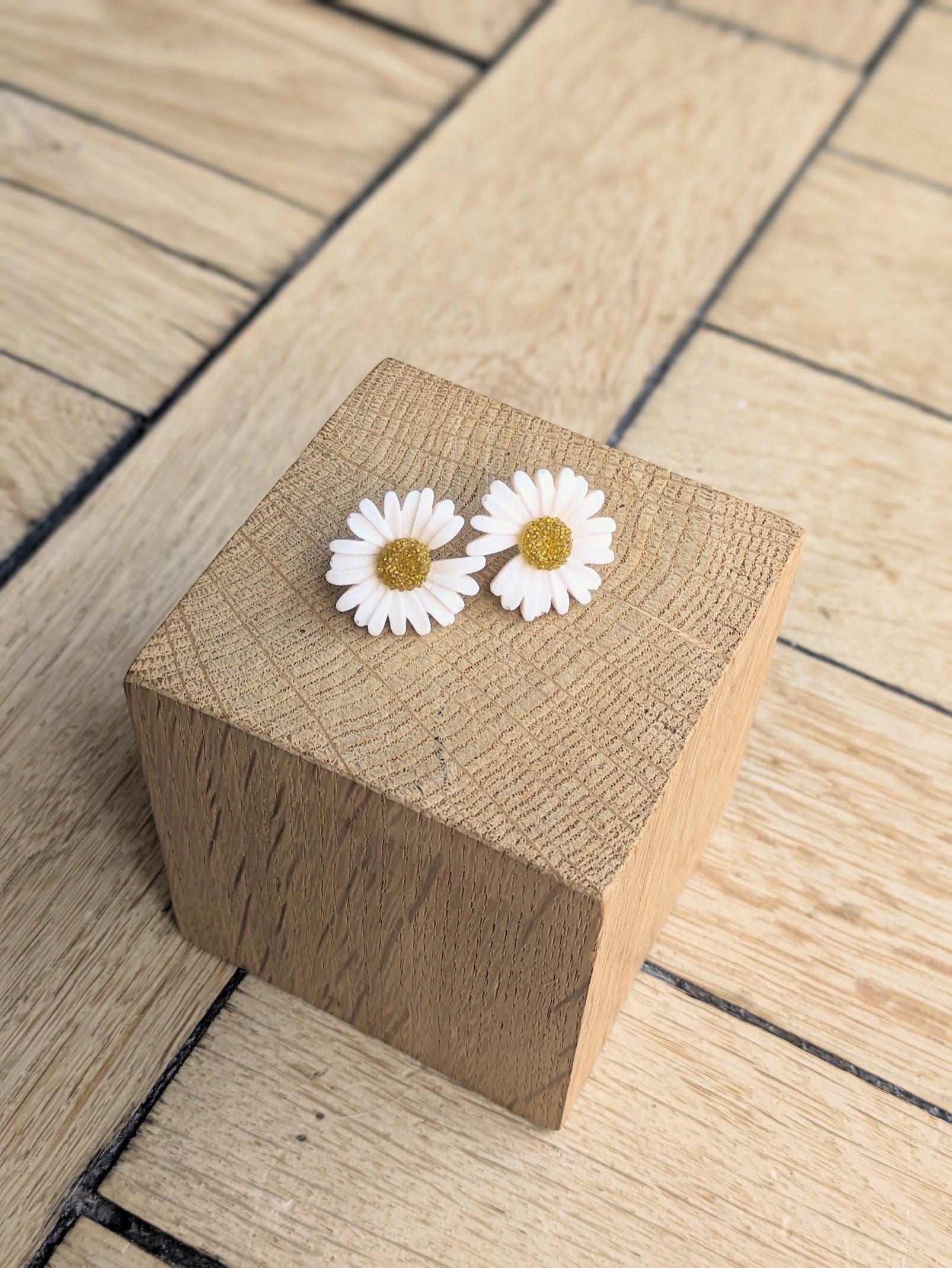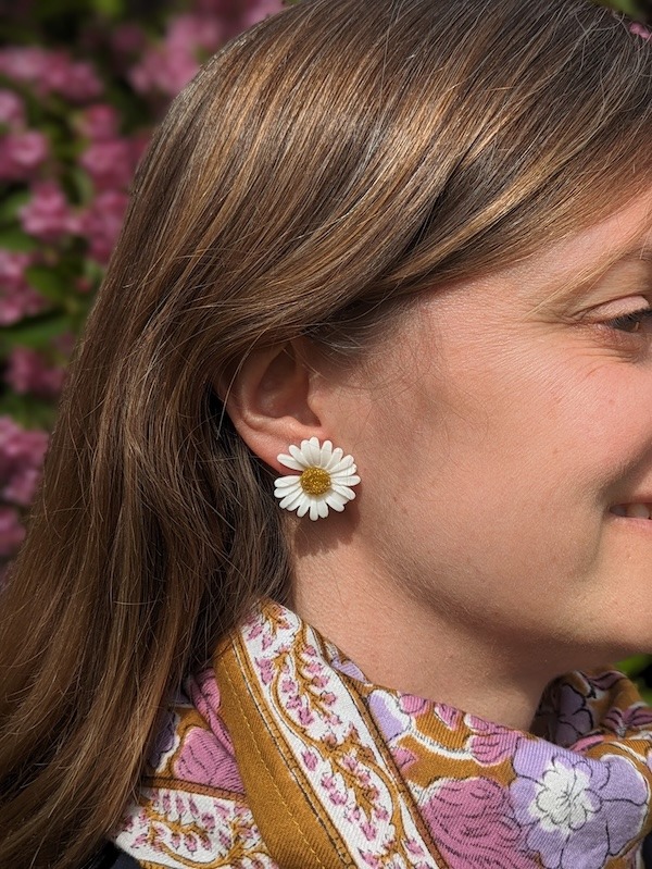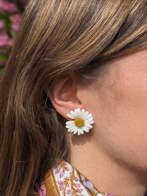 Clous d’oreilles fleurs en résine époxy entièrement réalisée à la main, poétiques et tendances, ultra légères et faciles à porter.