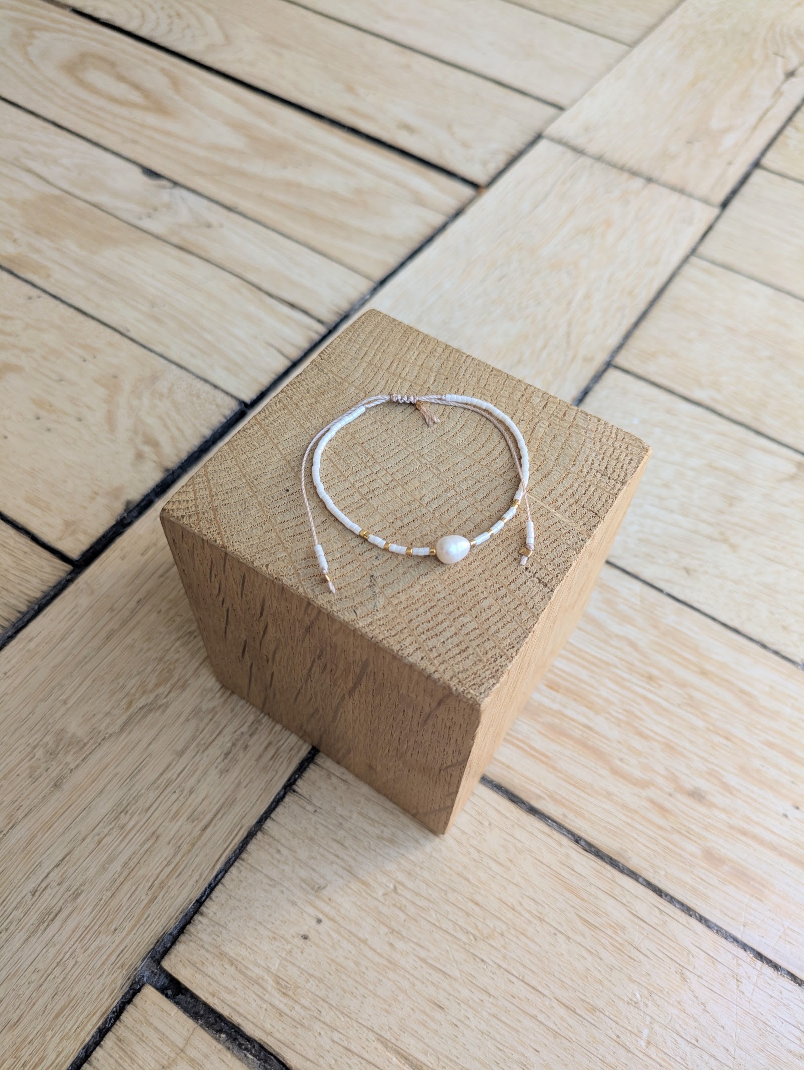 Fin bracelet en perles de verre et plaqué or, très tendance cette saison, à porter en accumulation avec les bracelets CLYDE, EVE, ELLIE, etc…