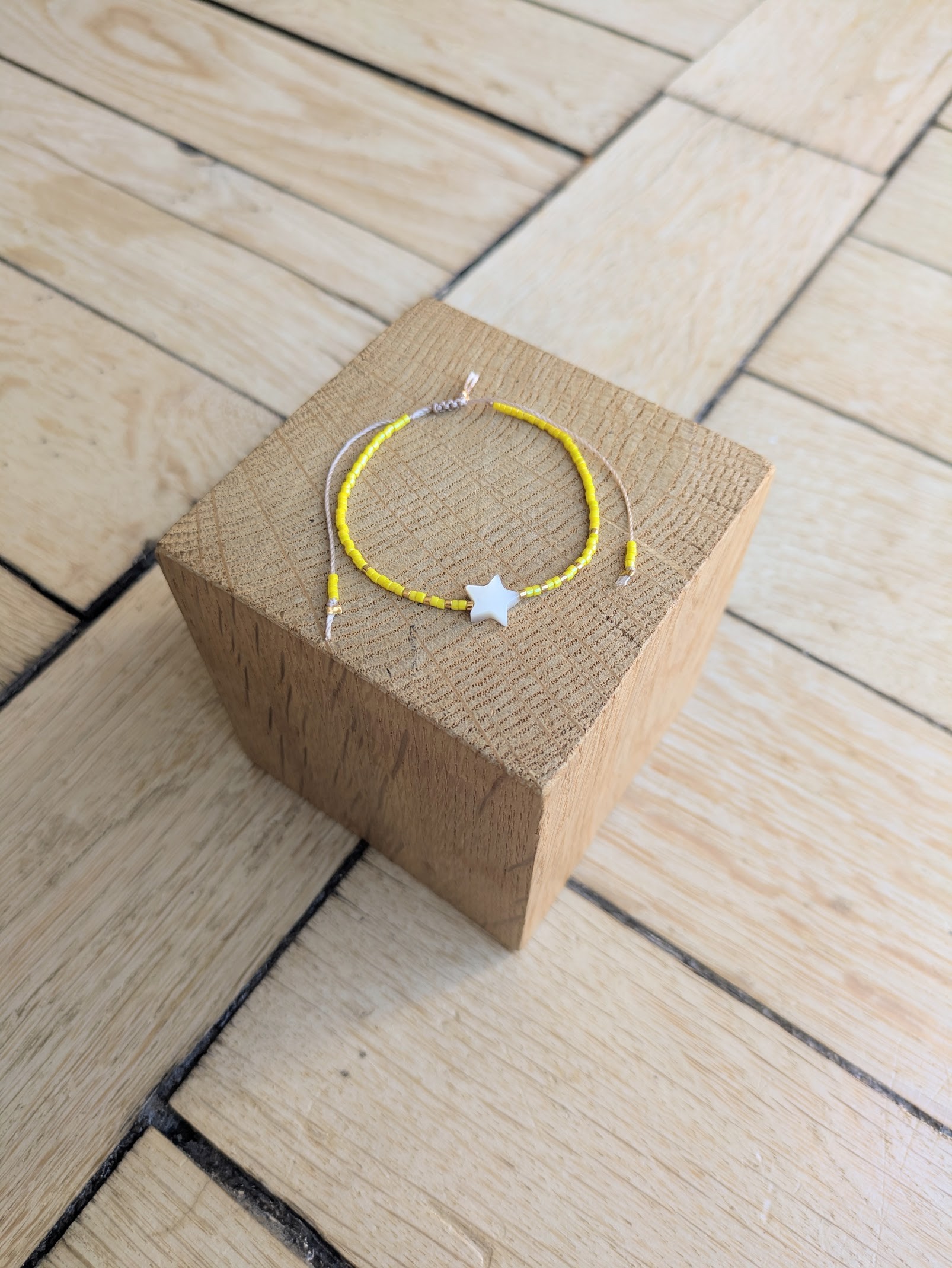 Fin bracelet en perles de verre et plaqué or, très tendance cette saison, à porter en accumulation avec les bracelets CLYDE, EVE, ELLIE, etc…