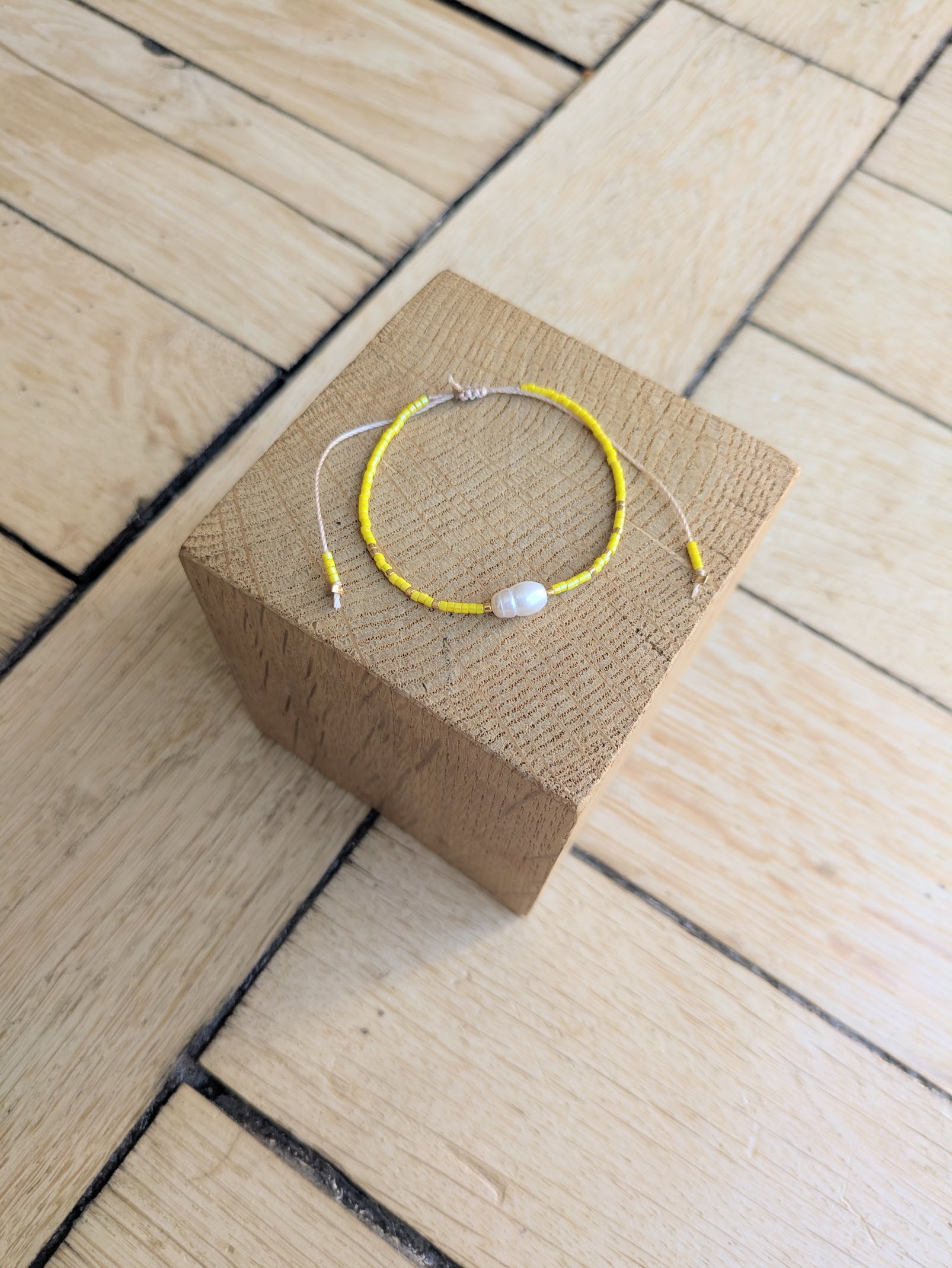 Fin bracelet en perles de verre et plaqué or, très tendance cette saison, à porter en accumulation avec les bracelets CLYDE, EVE, ELLIE, etc…