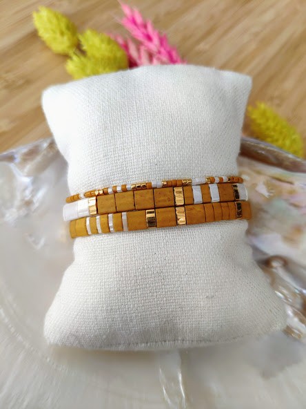 BRACELET CAMILLE x CLYDE – lot de 3 moutarde et écru