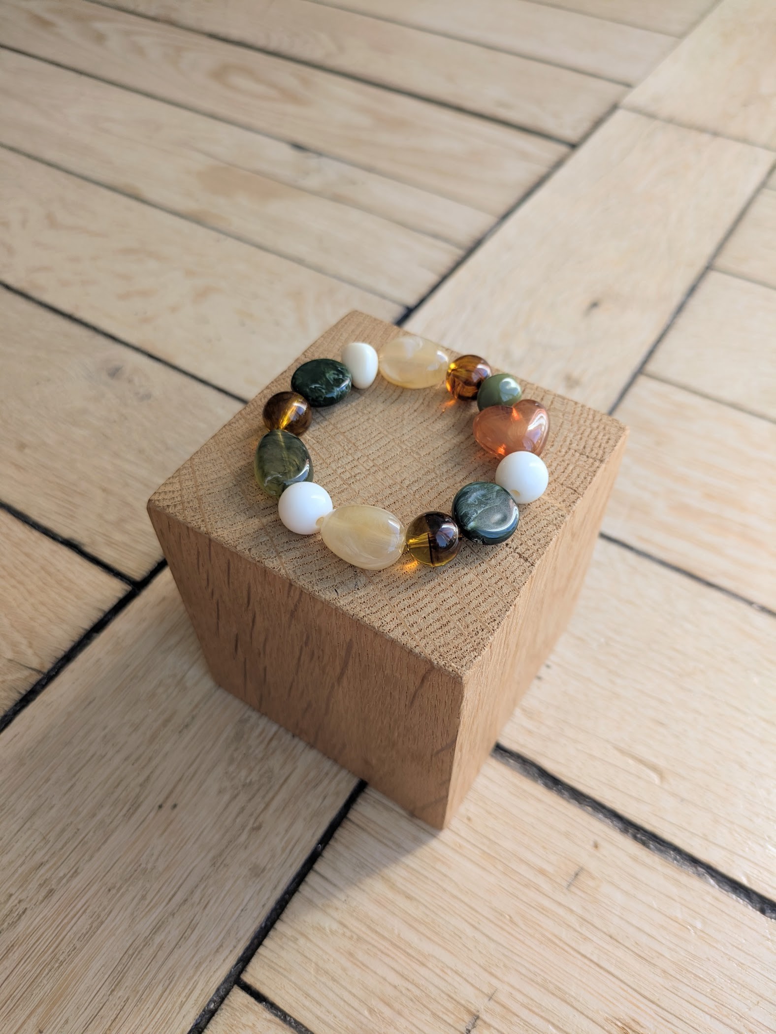 Bracelet élastiqué, taille unique environ 16cm de diamètre (me contacter pour une perle supplémentaire soit environ 17cm), perles acryliques