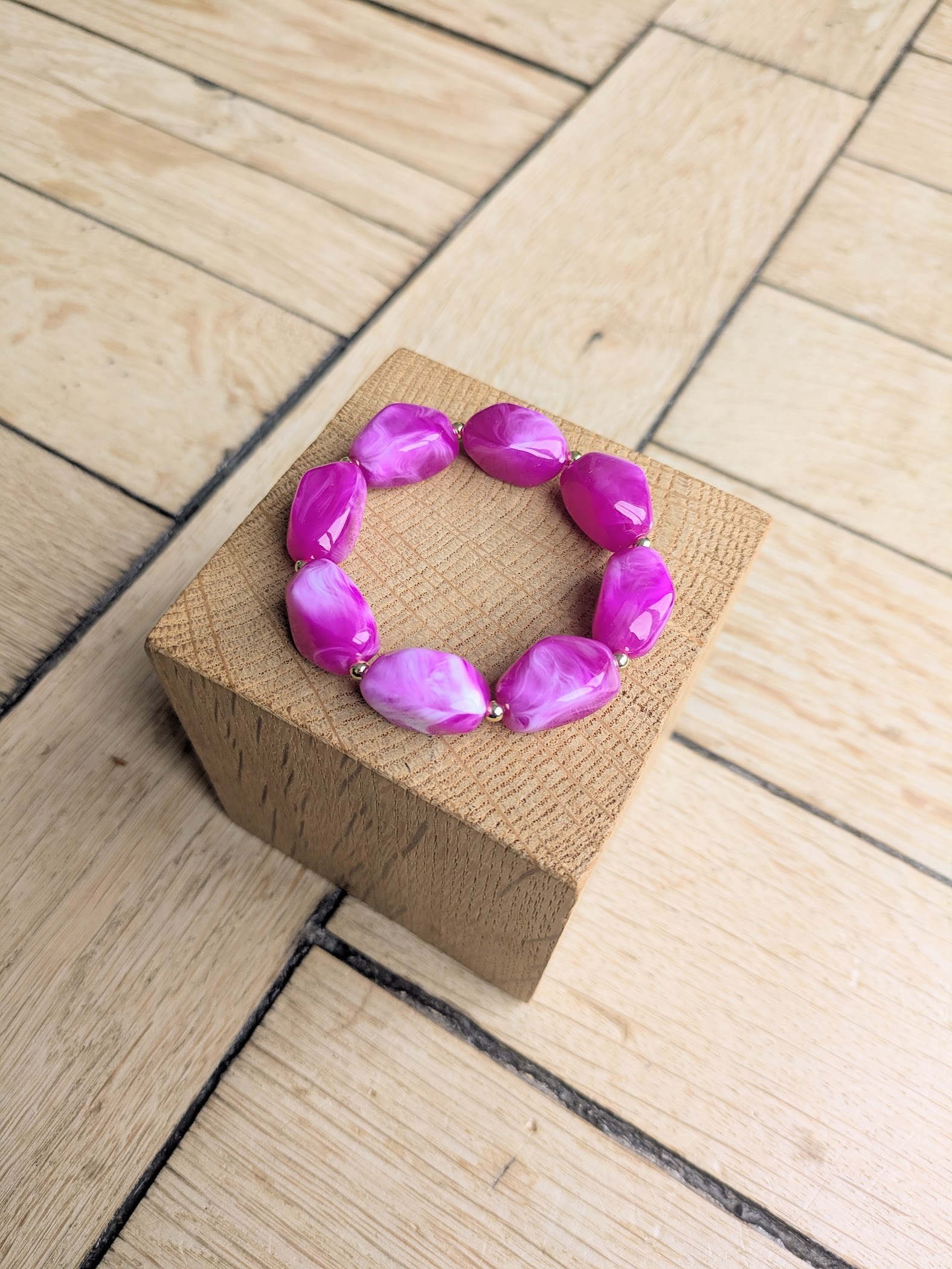 Bracelet élastiqué avec perles en acrylique marbré et perles dorées en acier inoxydable, taille unique environ 15cm de diamètre (me contacter pour une perle supplémentaire), perles acryliques