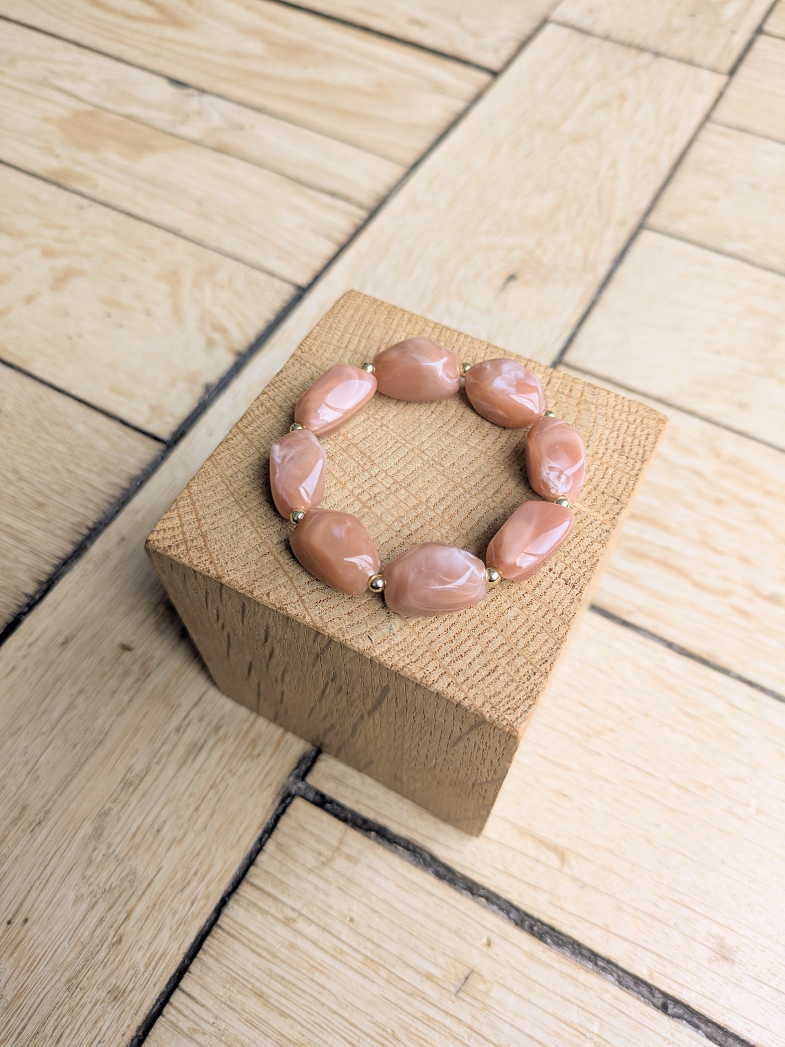 Bracelet élastiqué avec perles en acrylique marbré et perles dorées en acier inoxydable, taille unique environ 15cm de diamètre (me contacter pour une perle supplémentaire), perles acryliques