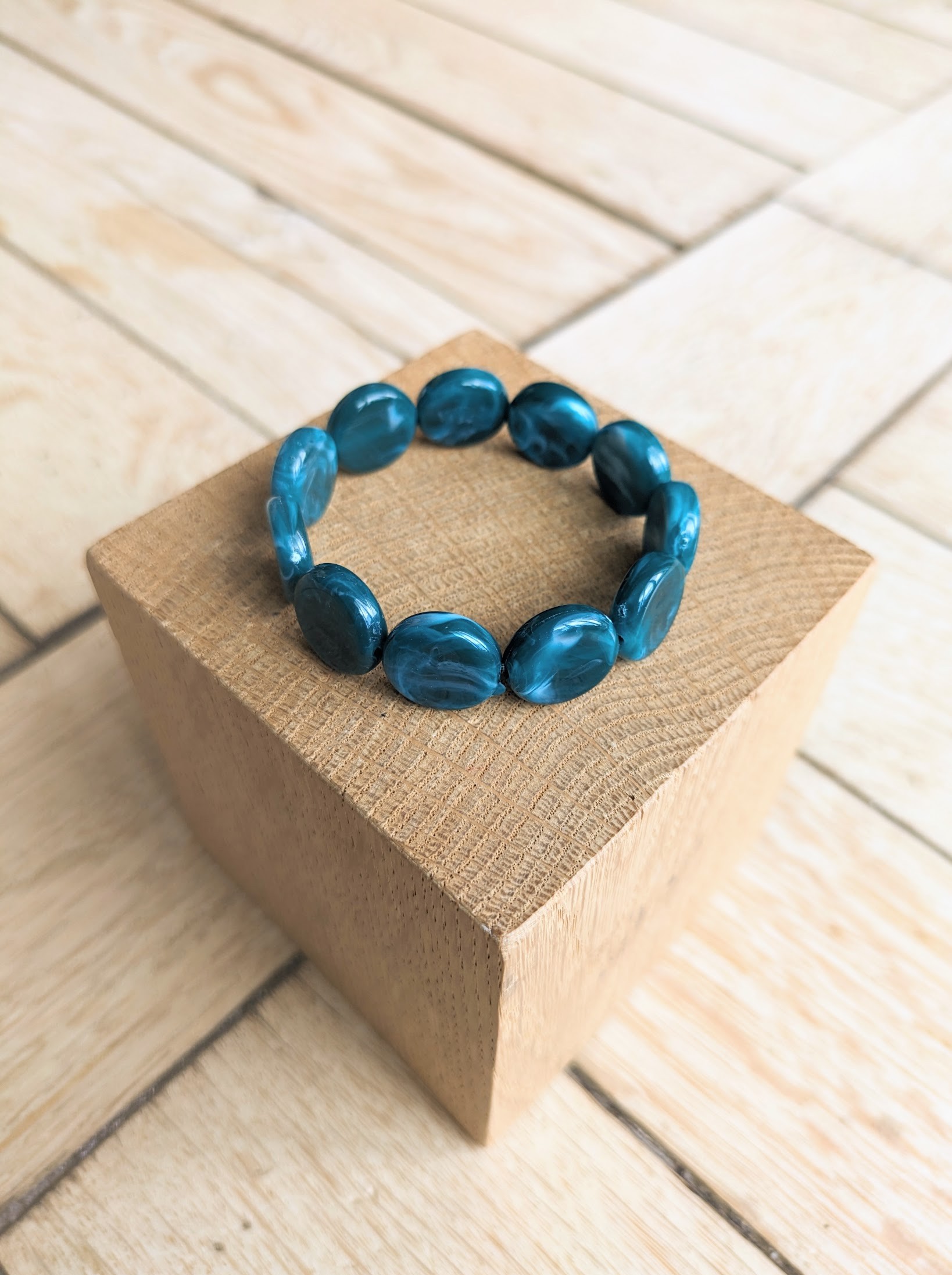 Bracelet élastiqué, 3 tailles possibles (15, 16,5 ou 18cm de tour de poignet), perles acryliques