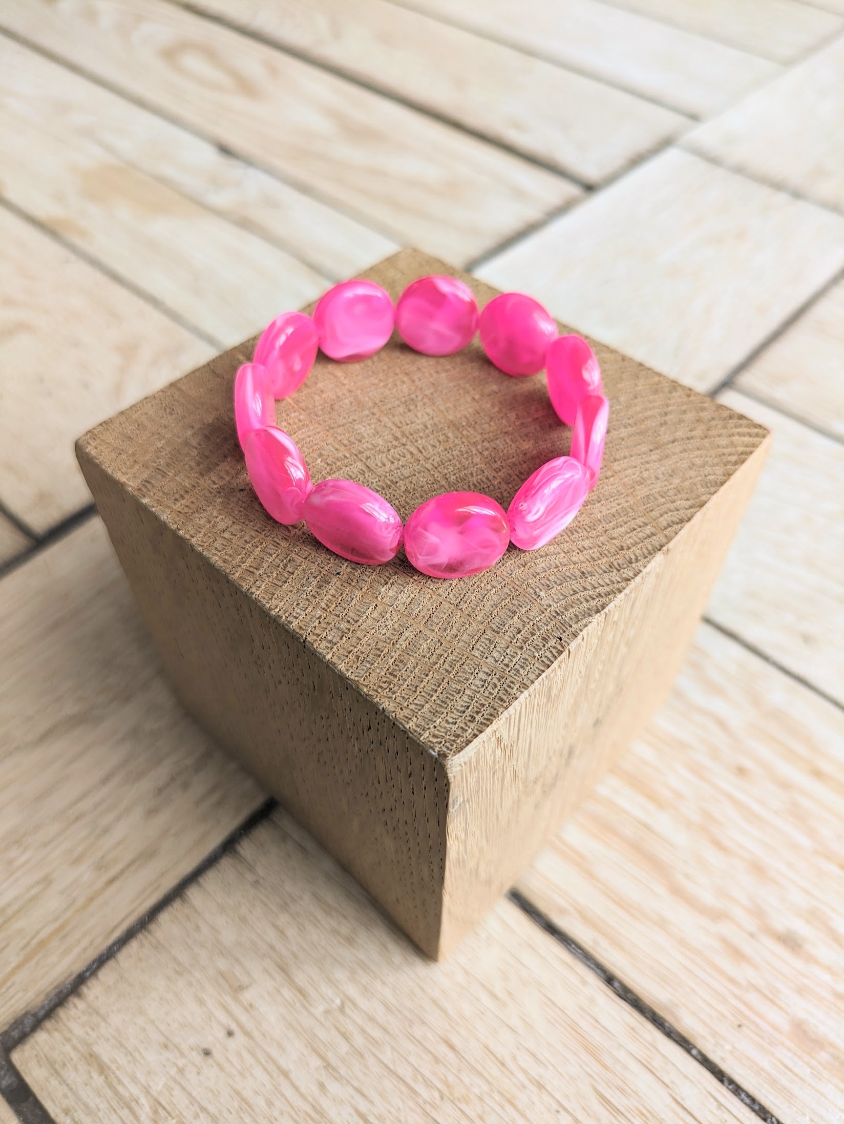 Bracelet élastiqué, 3 tailles possibles (15, 16,5 ou 18cm de tour de poignet), perles acryliques