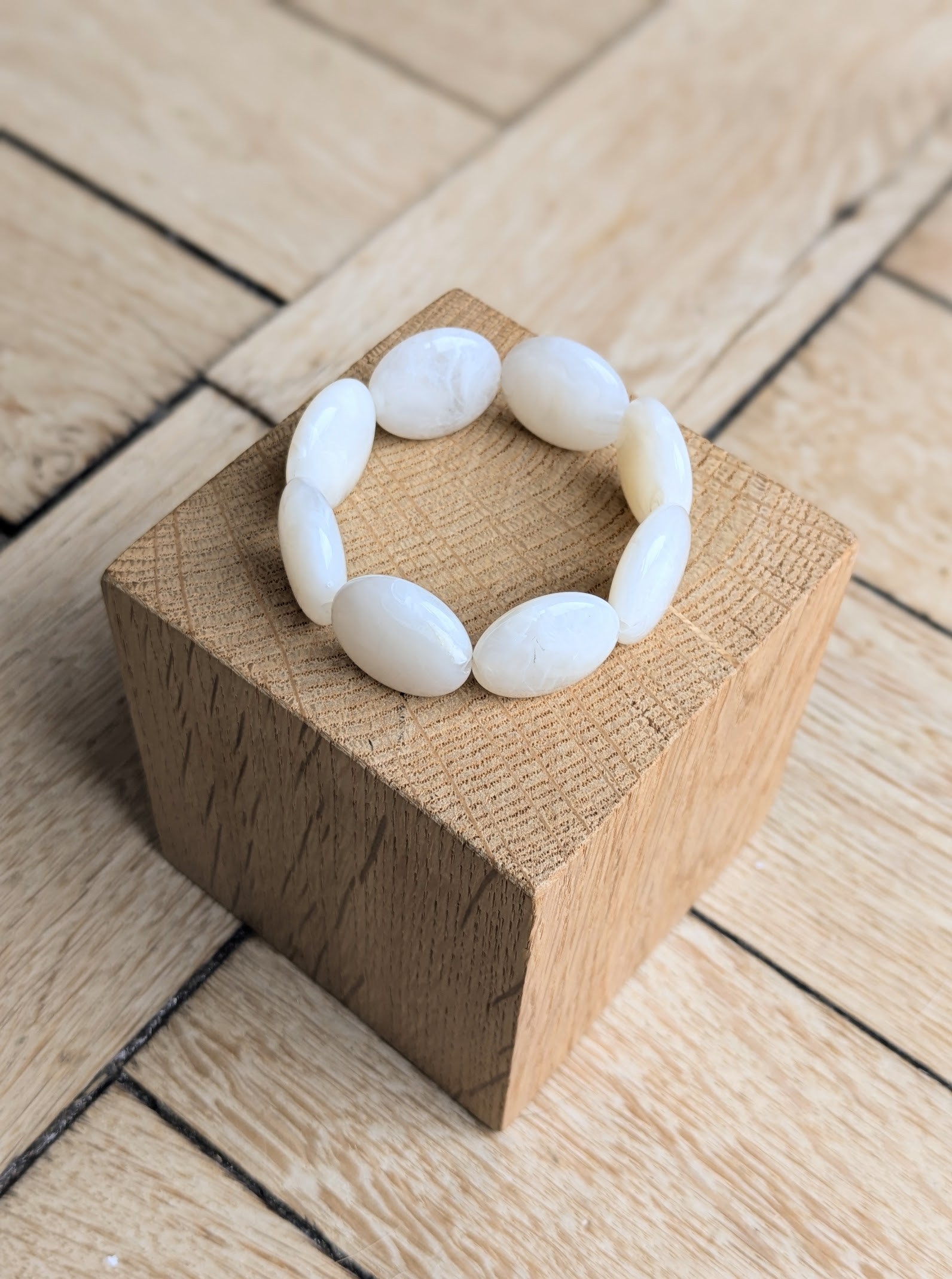 Bracelet élastiqué, 2 tailles possibles (15 ou 17cm de tour de poignet), perles acryliques