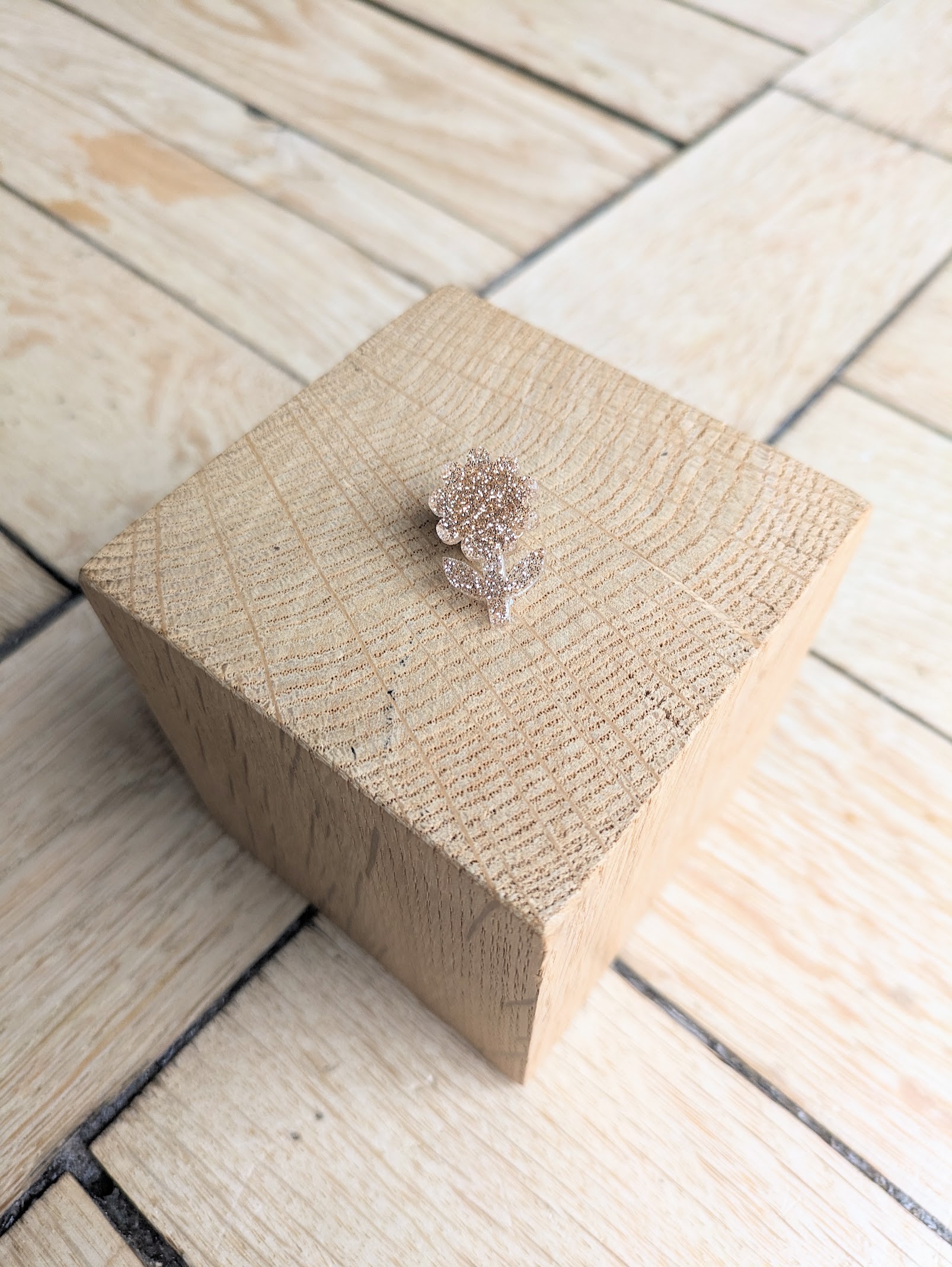 Pin’s en forme de fleur réalisé à la main de façon unique et artisanale dans le Nord de la France. Résine réalisée à base de paillettes, chaque pendentif est unique et différent, comportant des nuances (taille, couleur, forme…).