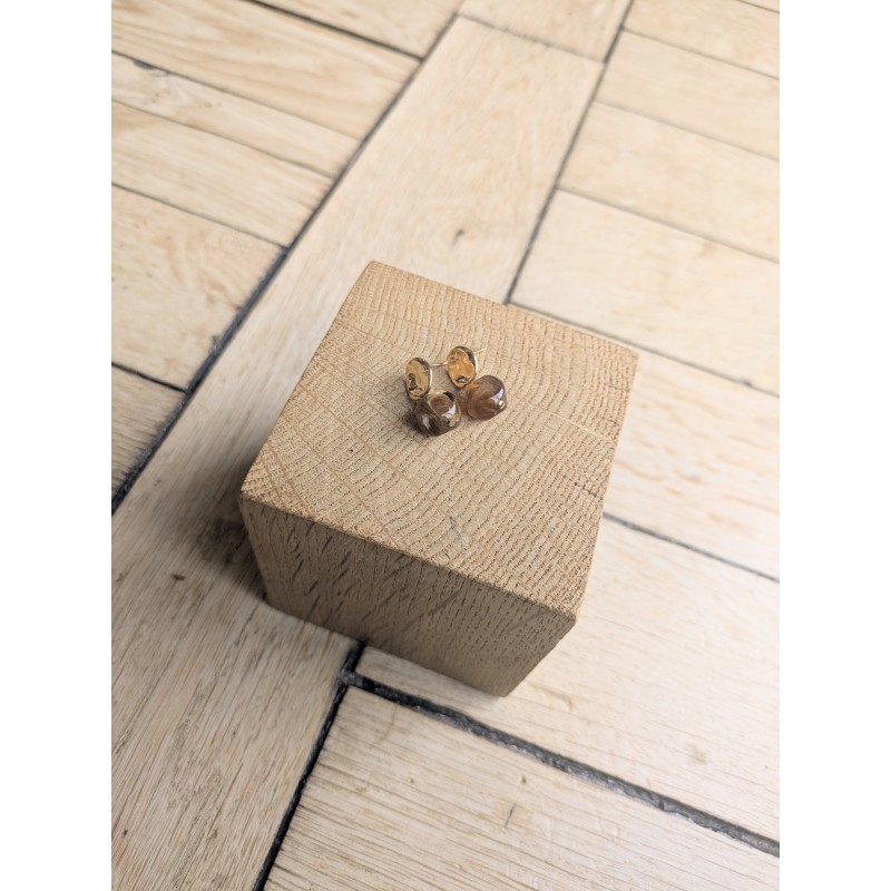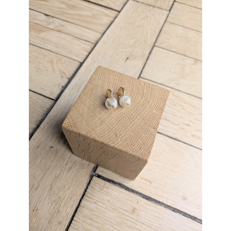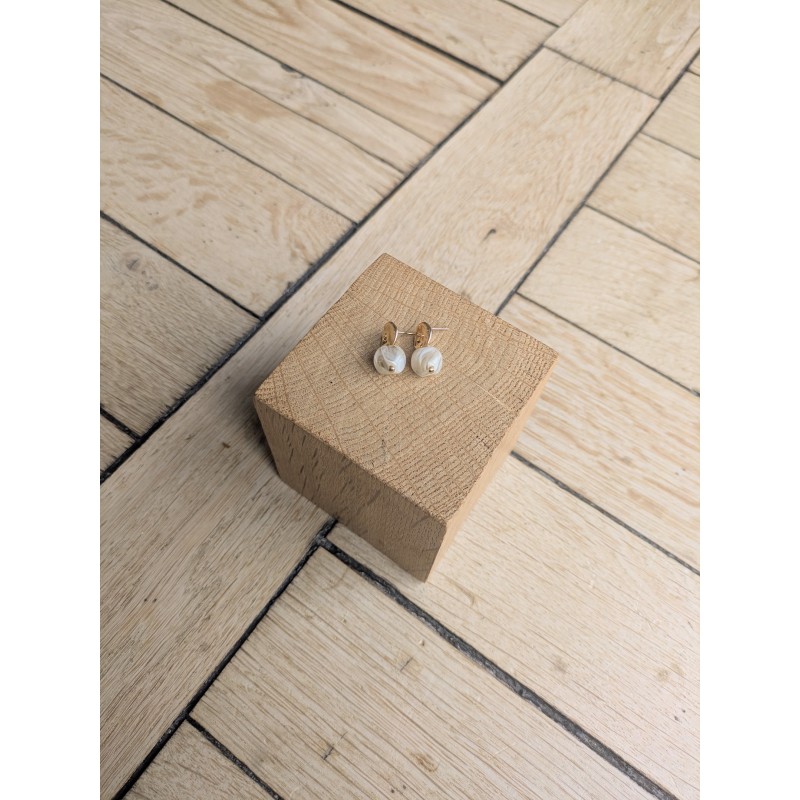 Clous d'oreilles en laiton doré à l'or fin 18K et perle en acrylique.