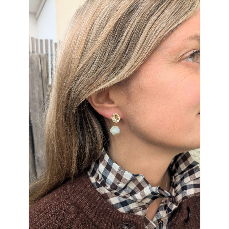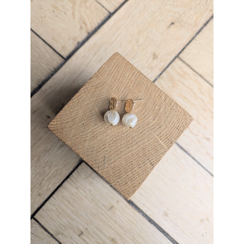 Boucles d'oreilles avec perle de forme irrégulière en acrylique, intemporelles, très légères et faciles à porter.