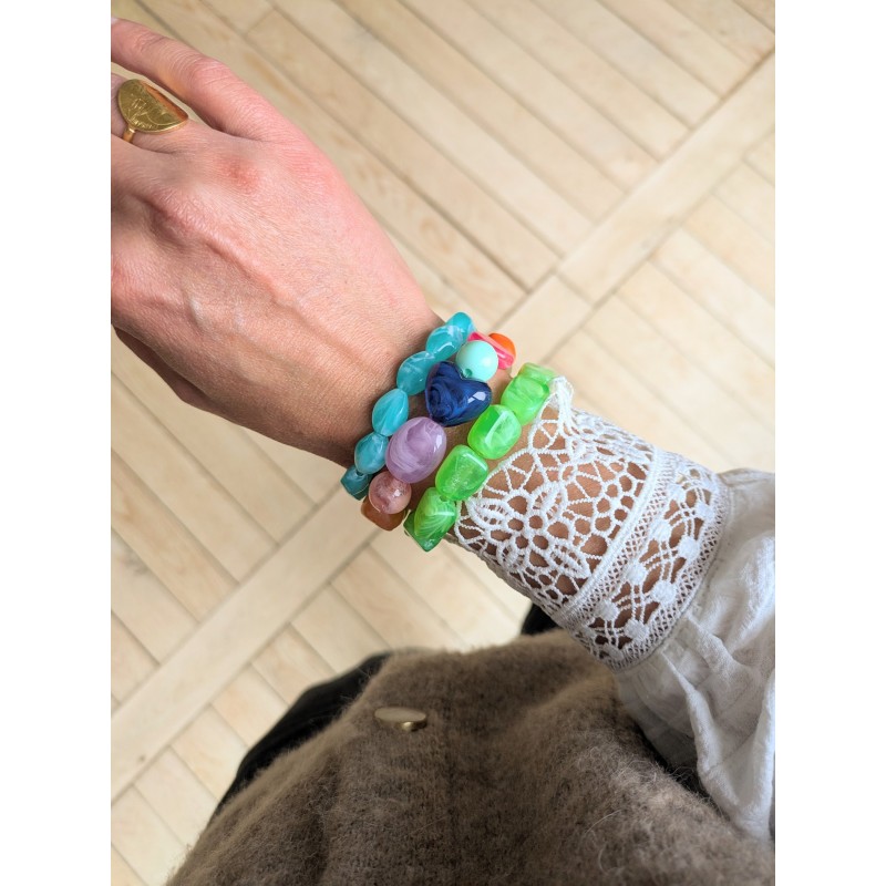Bracelet élastiqué, taille unique environ 15cm de diamètre (me contacter pour une perle supplémentaire soit environ 16,5cm), perles acryliques