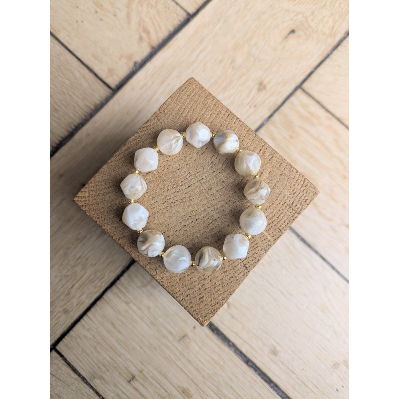 Bracelet élastiqué avec perles en acrylique marbré et perles dorées en acier inoxydable, taille unique environ 15cm de diamètre (me contacter pour une perle supplémentaire), perles acryliques