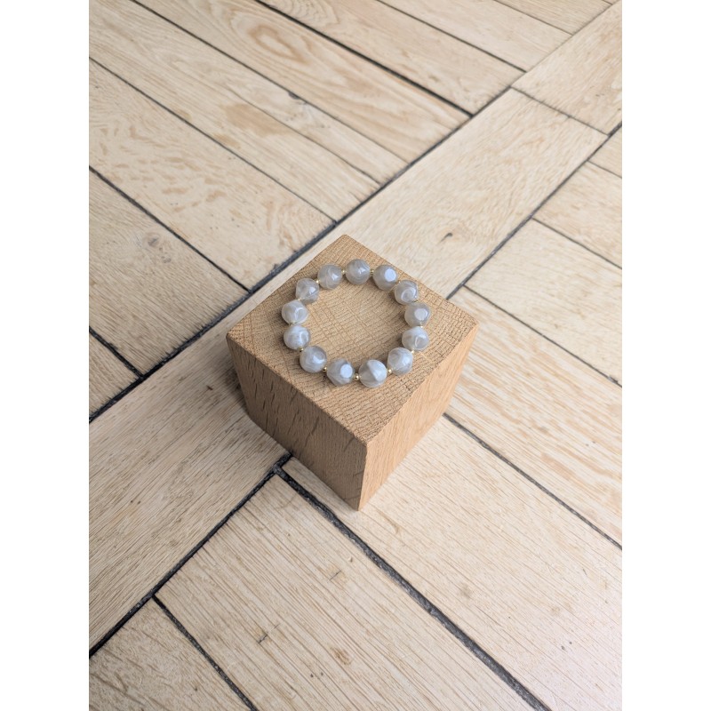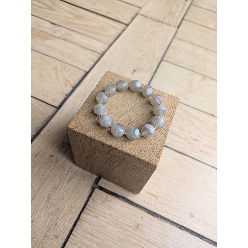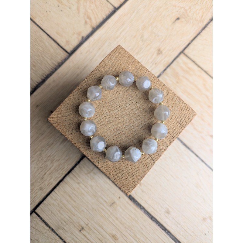 Bracelet élastiqué avec perles en acrylique marbré et perles dorées en acier inoxydable, taille unique environ 15cm de diamètre (me contacter pour une perle supplémentaire), perles acryliques