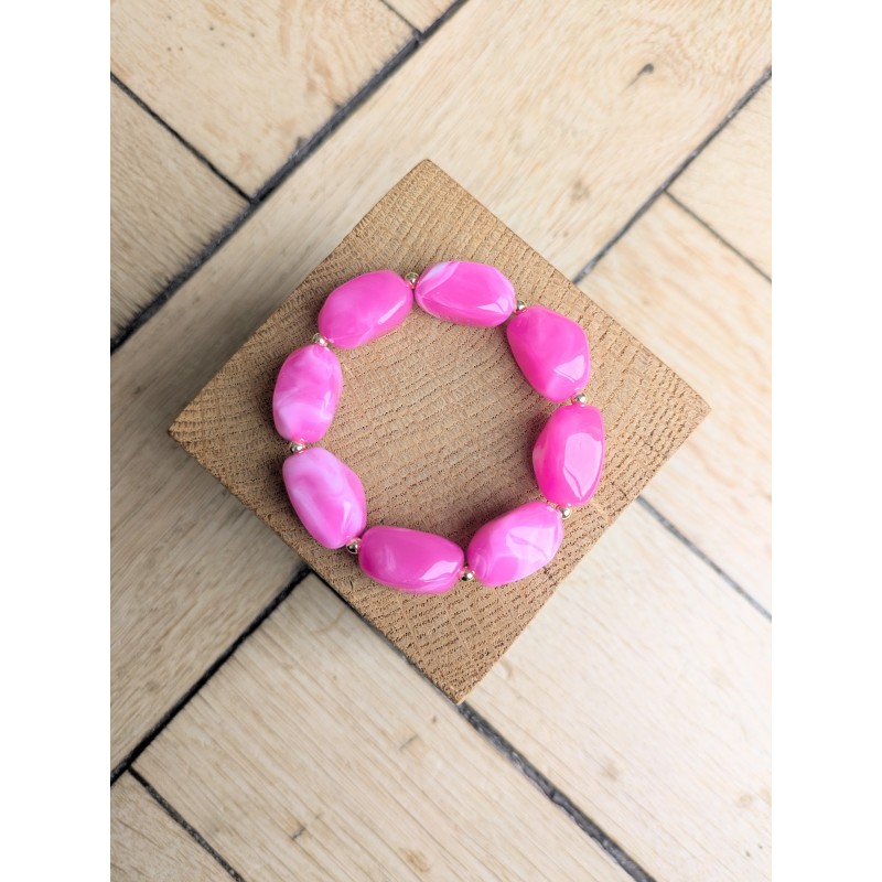 Bracelet élastiqué avec perles en acrylique marbré et perles dorées en acier inoxydable, taille unique environ 15cm de diamètre (me contacter pour une perle supplémentaire), perles acryliques