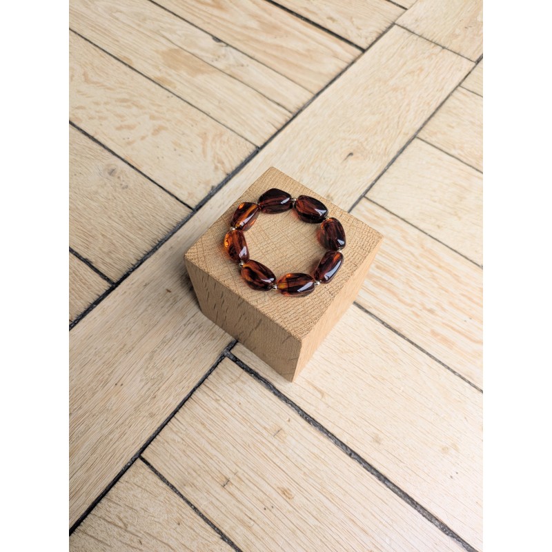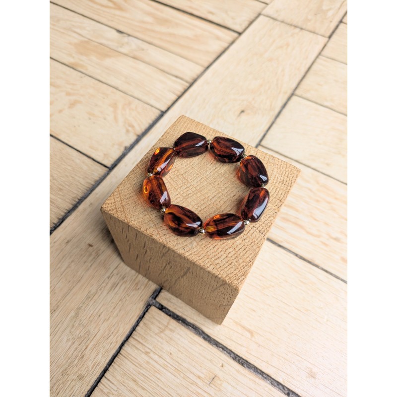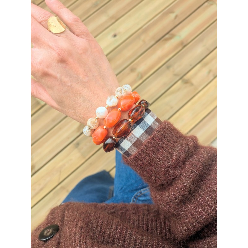 Bracelet élastiqué avec perles en acrylique marbré et perles dorées en acier inoxydable, taille unique environ 15cm de diamètre (me contacter pour une perle supplémentaire), perles acryliques