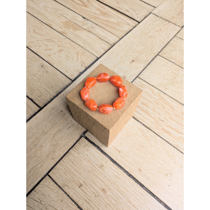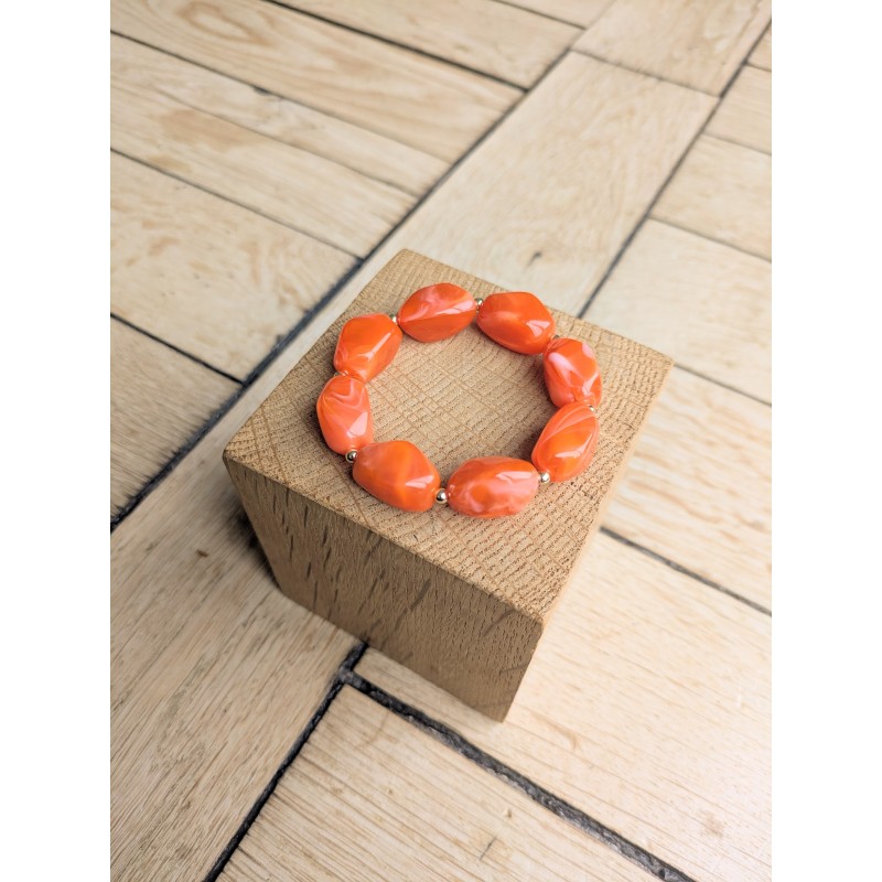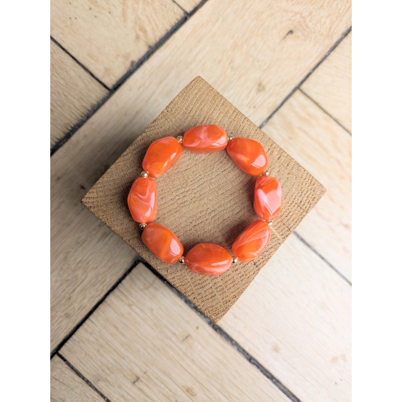 Bracelet élastiqué avec perles en acrylique marbré et perles dorées en acier inoxydable, taille unique environ 15cm de diamètre (me contacter pour une perle supplémentaire), perles acryliques